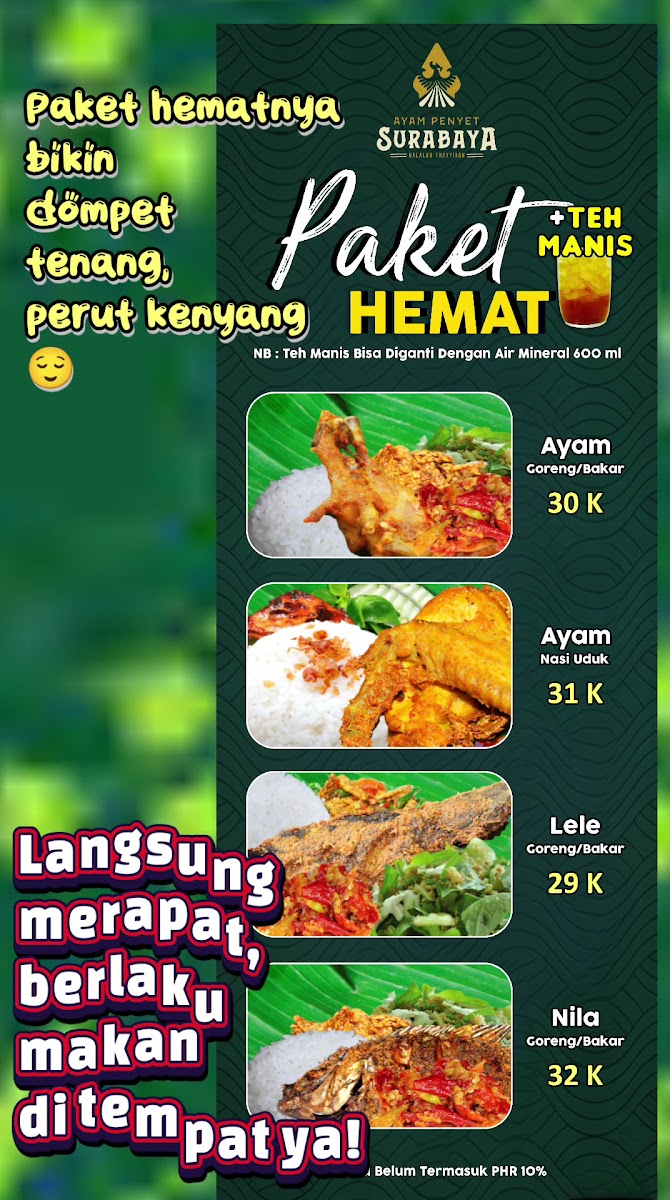 Ayam Penyet Surabaya invites you to indulge in authentic Javanese flavors right in the heart of Medan, located conveniently on Jl. Gunung Krakatau. Specializing in ayam penyet, this restaurant offers a rich menu that highlights the perfect balance of crispy fried chicken and their signature sambal, known for its vivid garlic notes and intense heat that excite the palate.